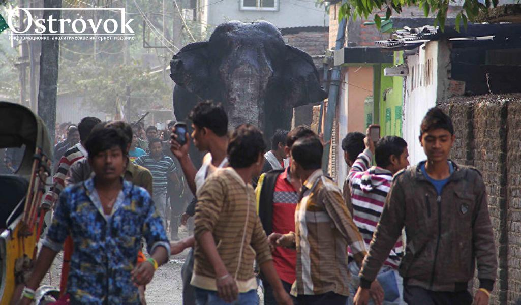 В индийский город забрел слон и повредил дома (ВИДЕО)