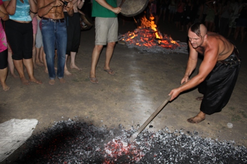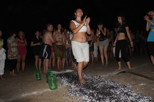 После концерта все желающие могли пройтись по углям под ритм этнических барабанов Олега Перепелицы или просто потанцевать возле костра. Интересно, что когда мы попытались покинуть территорию лагеря после концерта, мы были очень удивлены фактом того, что нам придётся лезть через забор, так как организаторы фестиваля посчитали необходимым закрывать ворота на замок после 10ти вечера, хотя на территории лагеря находятся в основном взрослые люди, к тому же у многих за забором припаркованы машины.