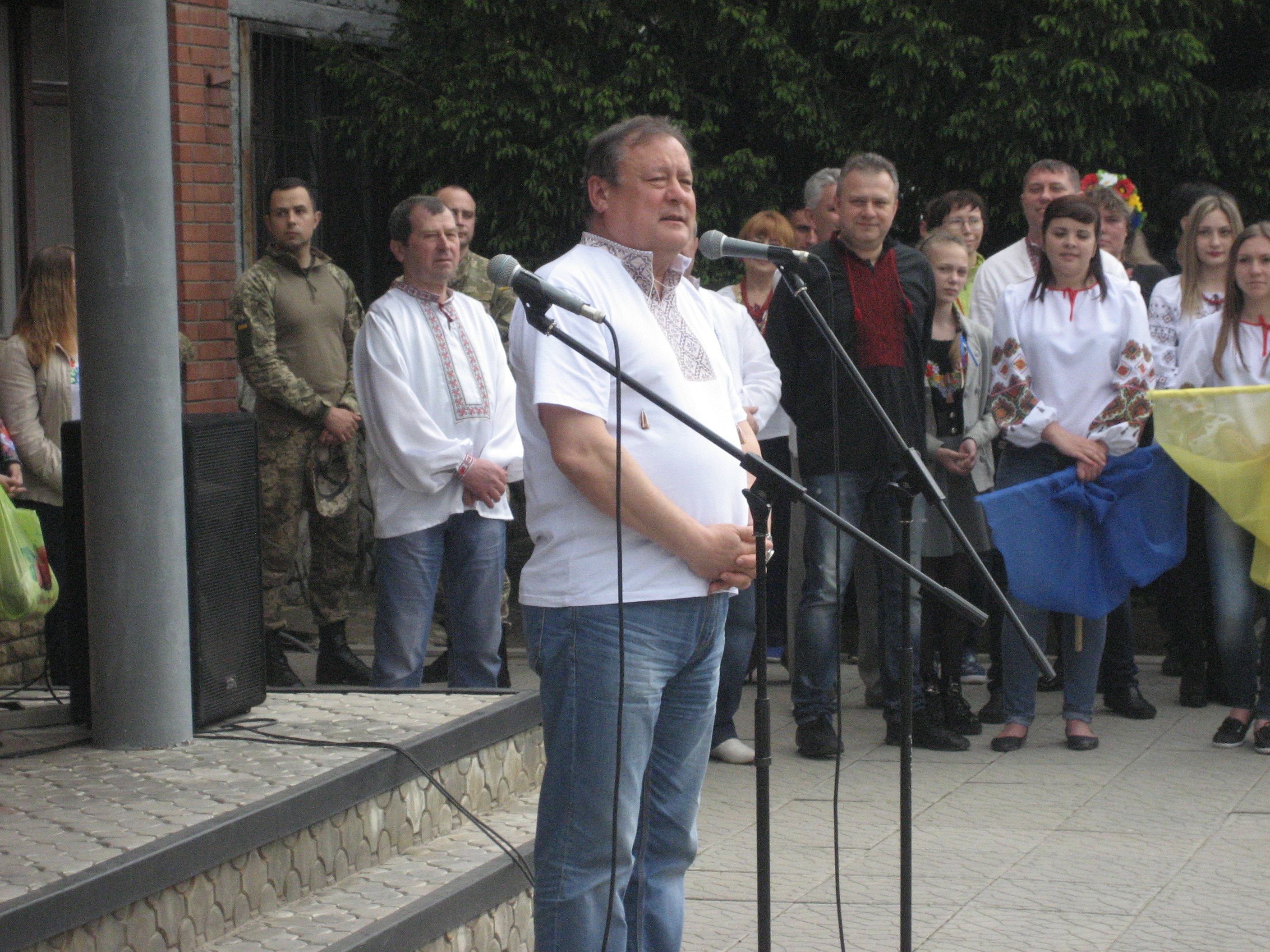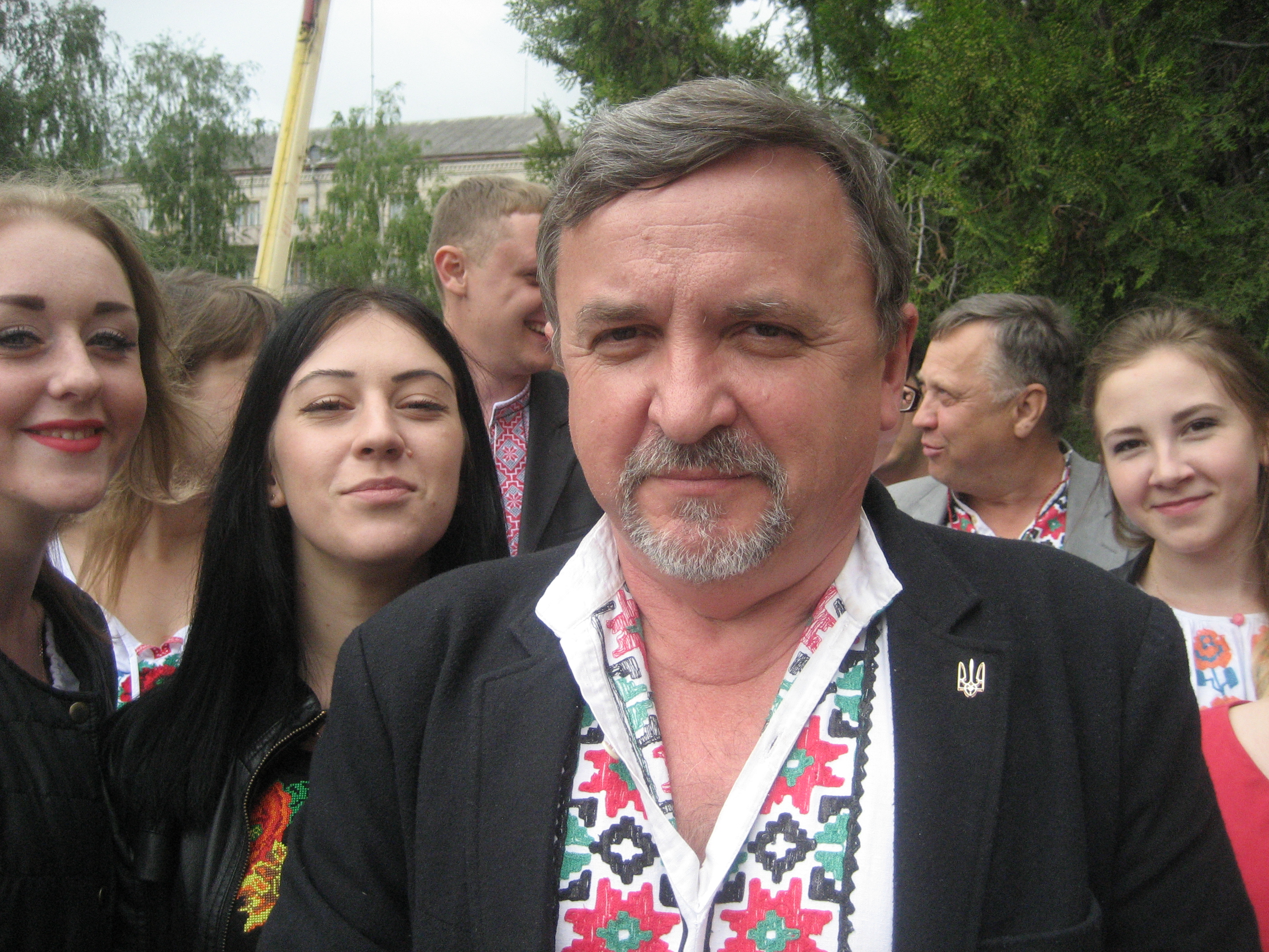 Главные мероприятия сегодня состоялись возле «белого корпуса» ЛНУ имени Тараса Шевченка в Старобельске. После Гимна Украины с приветствием к участникам обратился ректор университета Сергей Савченко.