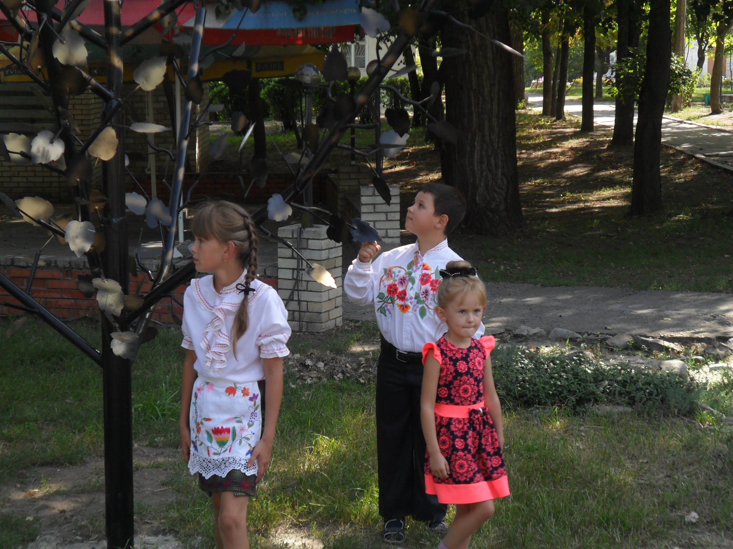 В старобільському парку культури та відпочинку увагу відвідувачів привертав, створений нещодавно, яскравий петриківський розпис на стіні «Зеленого театру».