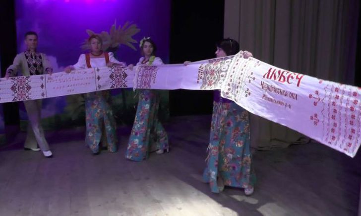 В Международный день родного языка на краматорской сцене Дворца культуры НКМЗ развернули рушник длиной 75 метров.