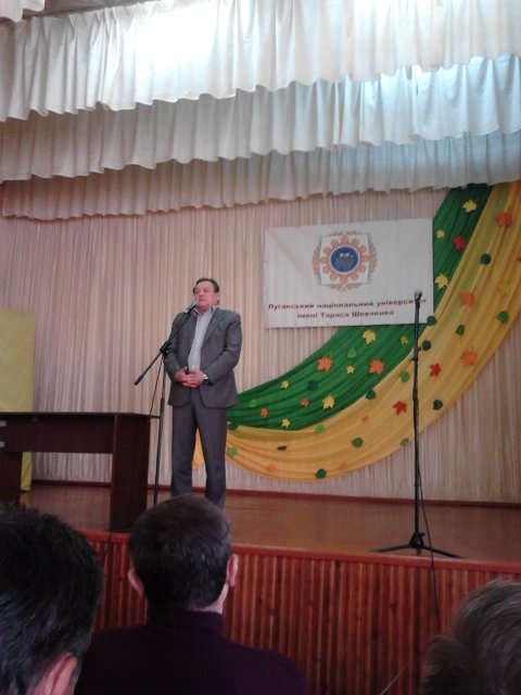 Перед собравшимися выступил ректор университета профессор Сергей Савченко, который пожелал, чтобы коллектив отметил следующий День учителя в своих стенах в Луганске. Напомним, что ЛНУ имени Тараса Шевченко уже второй учебный год начал в эвакуации в Старобельске. Помещения в Луганске захвачены самозванцами.