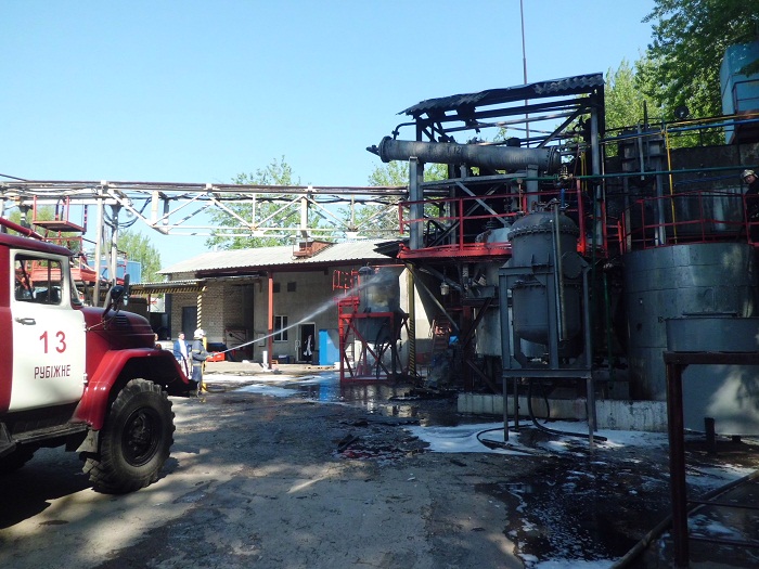 Пожар на предприятии произошел в Рубежном 2 мая. Об этом сообщает пресс-служба Главного управления Государственной службы чрезвычайных ситуаций Украины.