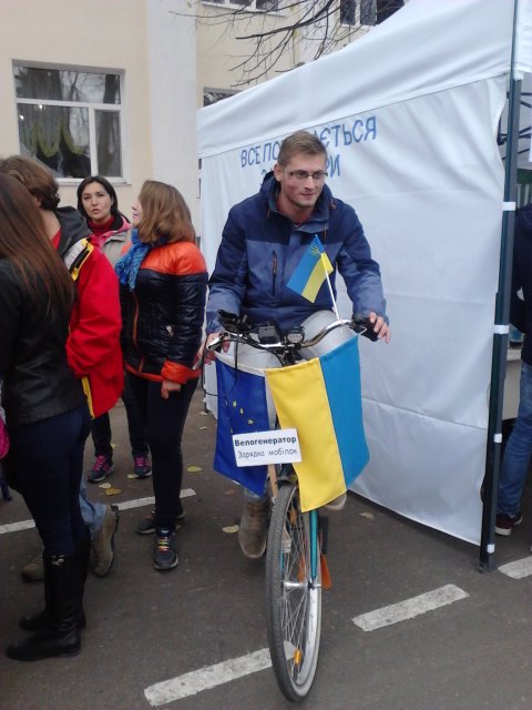 Можно даже зарядить мобильный телефон, покрутив педали специального велосипеда.