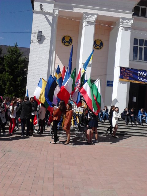 Каждая группа представляет какую-то страну. Дети идут с флагами и соответствующими табличками. Они должны представить страну и ее культуру. Репетиция детям, похоже, успешно заменяет сам праздник. На центральной площади города шумно и весело.