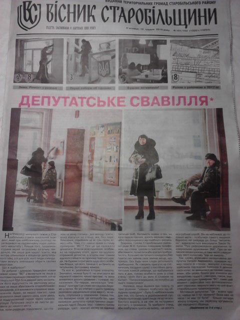Старобельская районная газета "ВІсник Старобільщини" свой последний номер (№101/102) начала с редакционной статьи "Депутатське свівілля".
