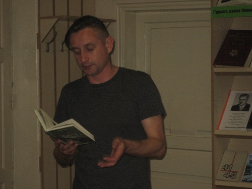 Далее поет читал свои стихи из сборника « Життя Марії», после чего предоставил слово другим участникам группы: молодой киевской поэтессе Елене Герасимьюк, луганской Любе Якимчук, киевлянам Дмитрию Лозуткину и Артему Пележаку.
