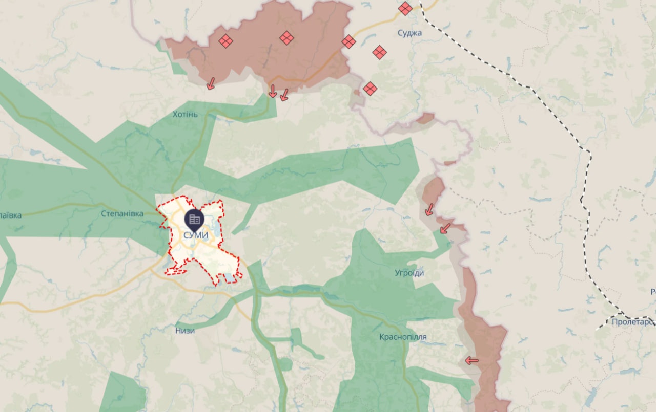 Російській армії протягом багатьох місяців вдалося зайняти кілька селищ безпосередньо на кордоні в Сумській області, але загрози для оточення Сум наразі немає, підтвердили в Угрупованні Об'єднаних сил, яке відповідає за оборону південної частини Сумщини, та "DeepState".