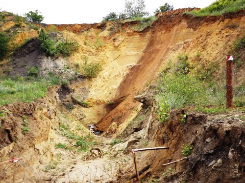 «Ранее здесь находился вентиляционный ствол, где располагались промышленные помещения. Когда мы начали выполнять работы по формированию рельефа, наткнулись на бетонные конструкции. Но основная опасность – расположение откосов возле устья выработки. Откосы на сегодня составляют 70 градусов. Для безопасного ведения поисково-разведовательных работ откос не должен превышать 28 градусов. Сегодня высока вероятность сползания нависших кусков песчано-глинистой почвы. Это наибольшая опасность, с которой сопряжены эти работы. Мы подвергаем людей, ведущих работы, большому риску», - рассказал начальник шахты им. 50-летия СССР Вадим Чекмезов.