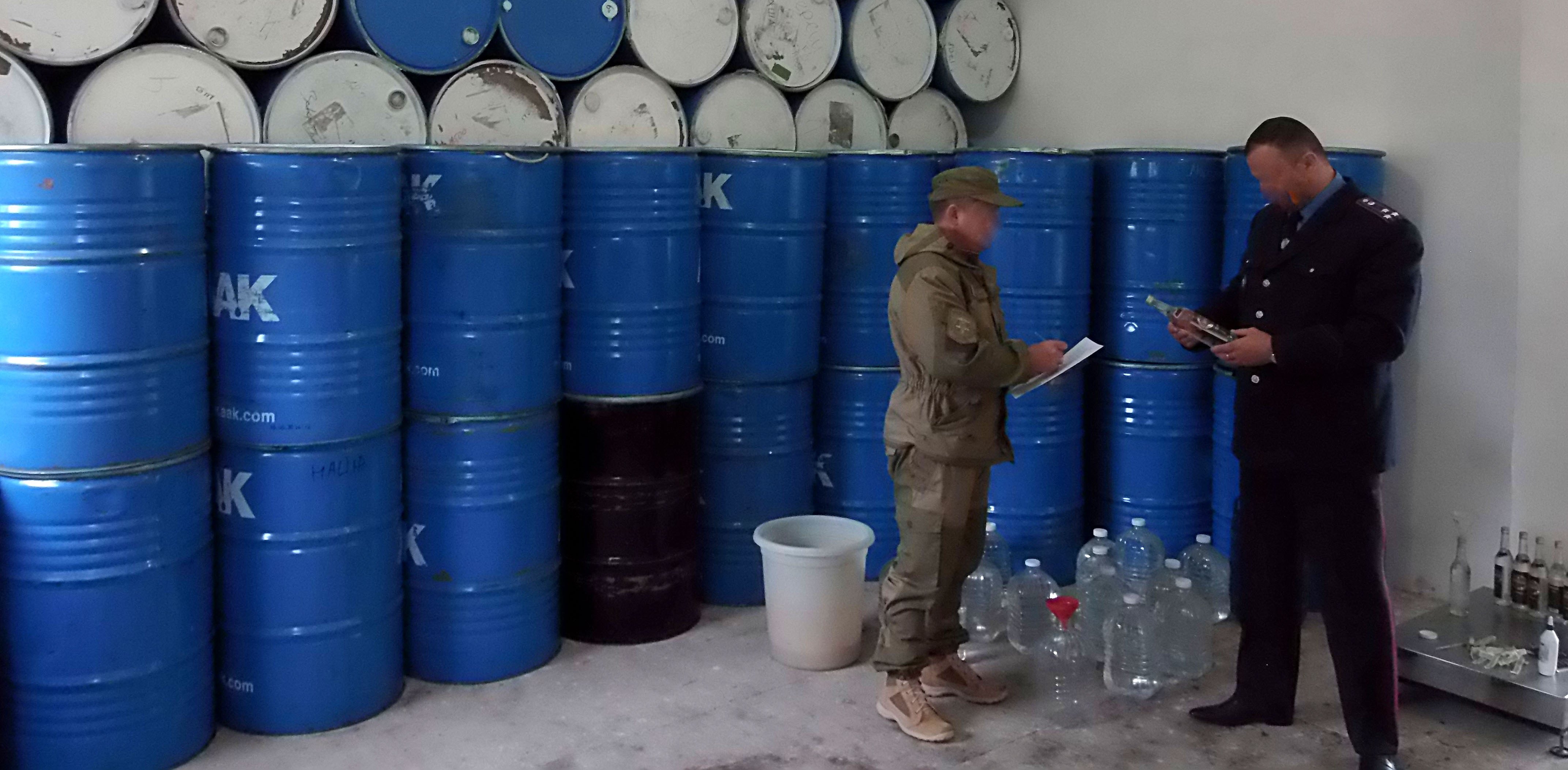 Сотрудники налоговой милиции Луганской области совместно с процессуальным руководителем прокуратуры Луганской области в рамках операции «Акциз - 2017» и в ходе проведения мероприятий по уголовному производству по ч. 1 ст. 204 УК Украины на основании постановления следственного судьи провели обыск частной территории, помещений и зданий, расположенных в одном из населенных пунктов Беловодского района Луганской области. Во время проверки был установлен факт деятельности подпольного производства по изготовлению алкогольных напитков из сомнительного сырья – спирта неизвестного качества и происхождения.