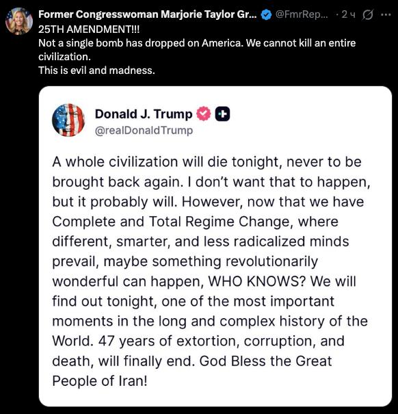 "Психічно ненормальний". Конгресвумен Марджорі Грін, одна з найбільших прихильниць Трампа, тепер вимагає його усунення та застосування 25-ї поправки до Конституції