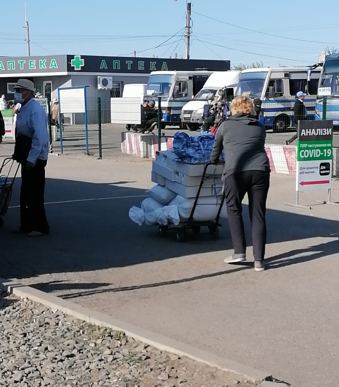 На КПВВ Станица Луганская постепенно cформировалась специальная группа заробитчан, которые на тележках от украинской до луганской стороны доставляют товары. Их здесь называют "верблюдами", сообщает корреспондент Ostrovok.