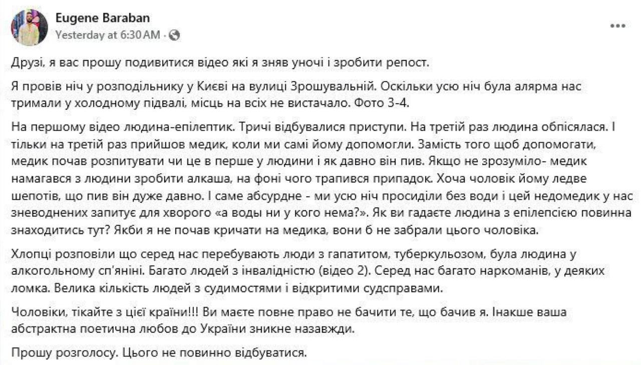 «Ставлення як до худоби перед смертю». Український художник Євген Барабан розповів, як поводяться з мобілізованими у Солом"янському ТЦК у Києві