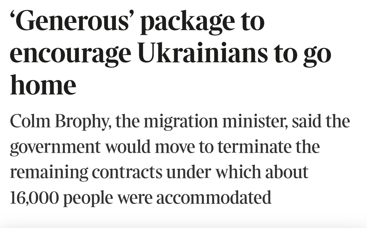 Ірландія має намір протягом року розірвати контракти на розміщення близько 16 тисяч українців та запустити політику їхнього повернення, пише The Sunday Times.