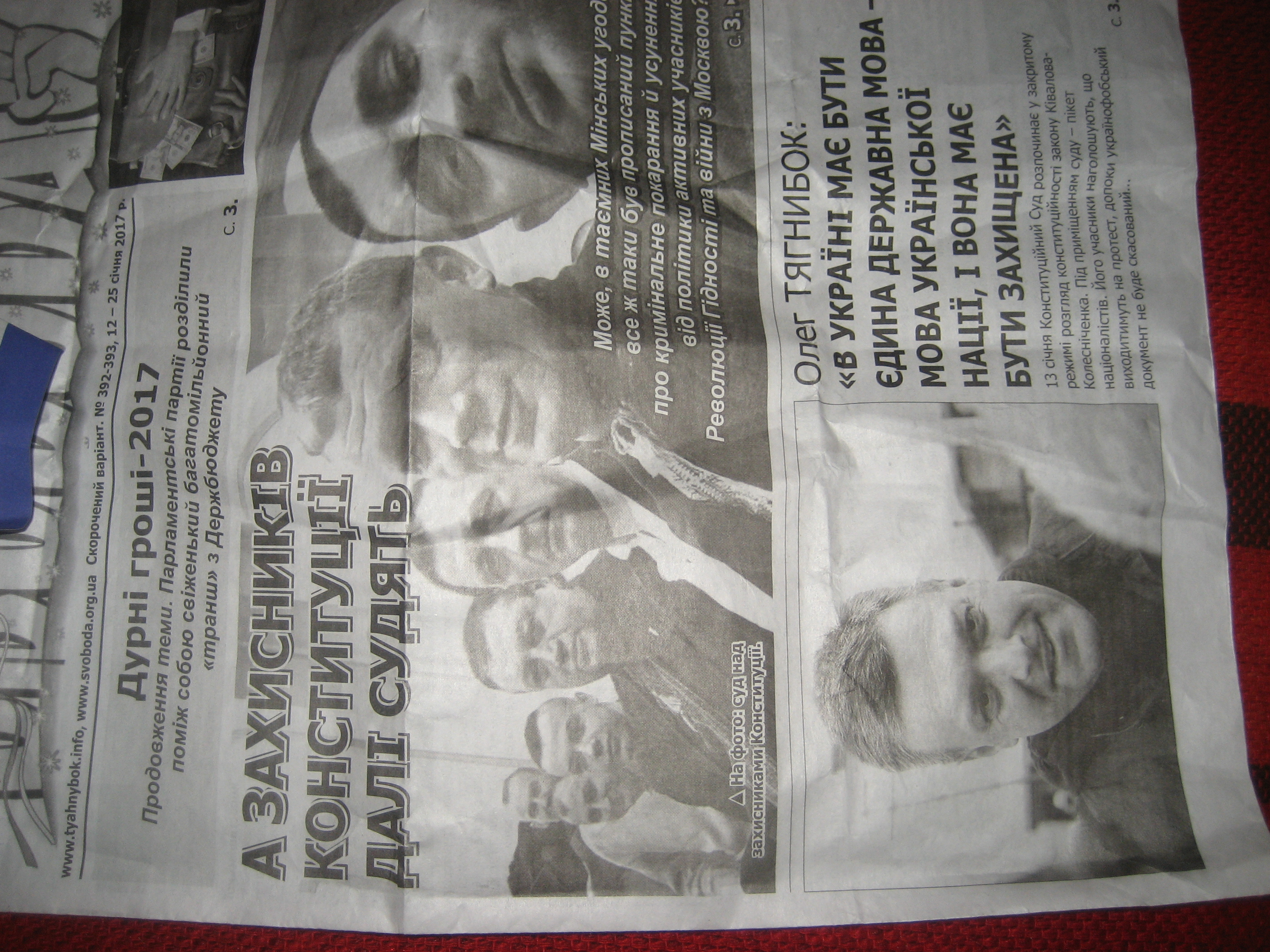 В Ивано-Франковске бесплатно раздают газету "Свобода". Одним из анонсов на первой странице - слова подзабытого Олега Тягнибока: "В Украине должен быть один государственный язык - язык украинской нации, и он должен быть защищен".