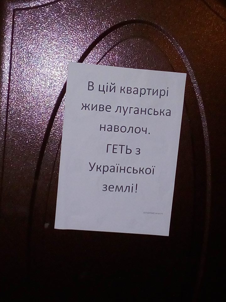 Вночі на його дверях квартири у селі Крихівці наліпили листок з написом: “В цій квартирі живе луганська наволоч. ГЕТЬ з Української землі”.