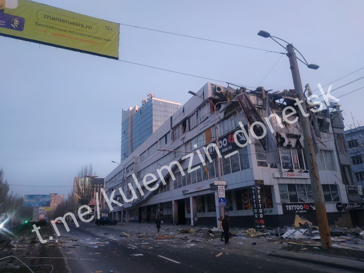 Місцеві ЗМІ повідомляють про численні руйнування після масованого обстрілу центру Донецька і 15 грудня з посиланням на Олексія Кулемзіна, що називає себе "главою адміністрації" міста.