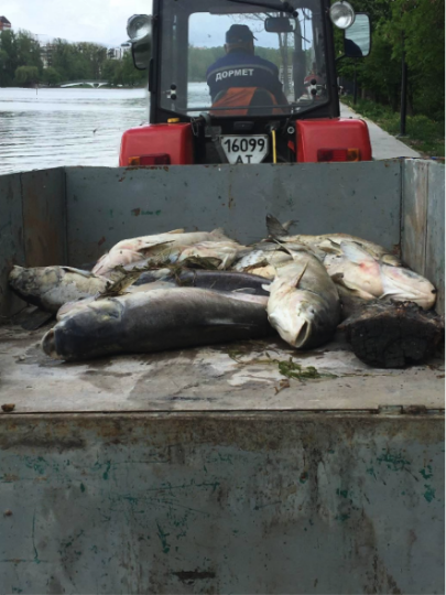 "На міському озері в Івано-Франківську продовжує в спливати мертва риба. Вона така велика... й складається відчуття, що нещодавно в озері потонув баркас чи сталася аварія й радянський газ з написом «живая рыба» пішов на дно.Тема для журналістського (й не тільки) розслідування", - пише Ярослав Мінкін.
