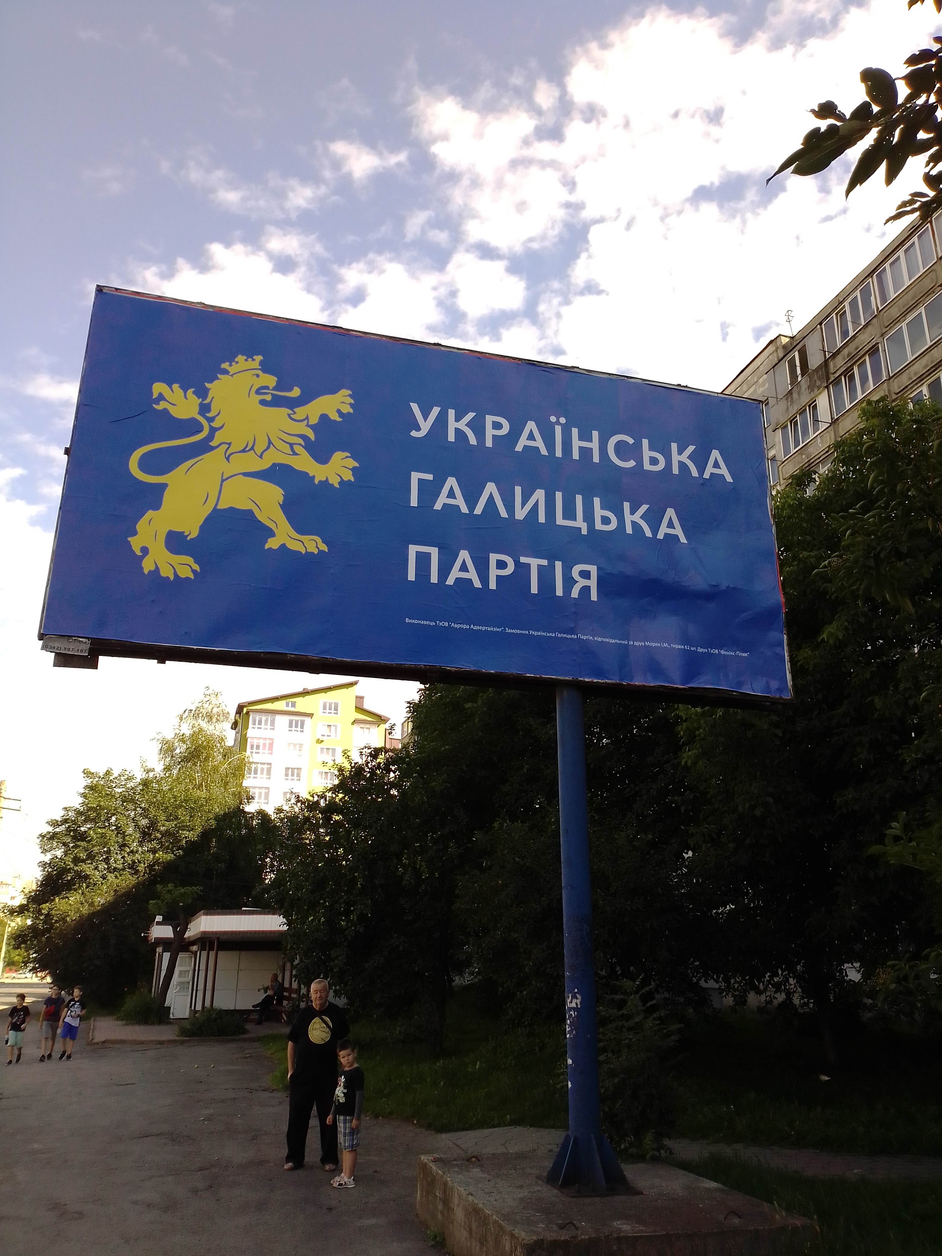 На в'їзді в Івано-Франківськ з боку Тисмениці над дорогою висить величезна блактна розтяжка, на якій жовтим написано "Українська галицька партія". На білбордах по місту теж досить багато реклами цього політичного проекту. Про це повідомляє кореспондент Ostrovok.