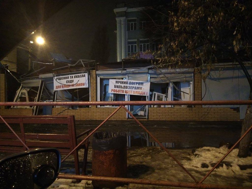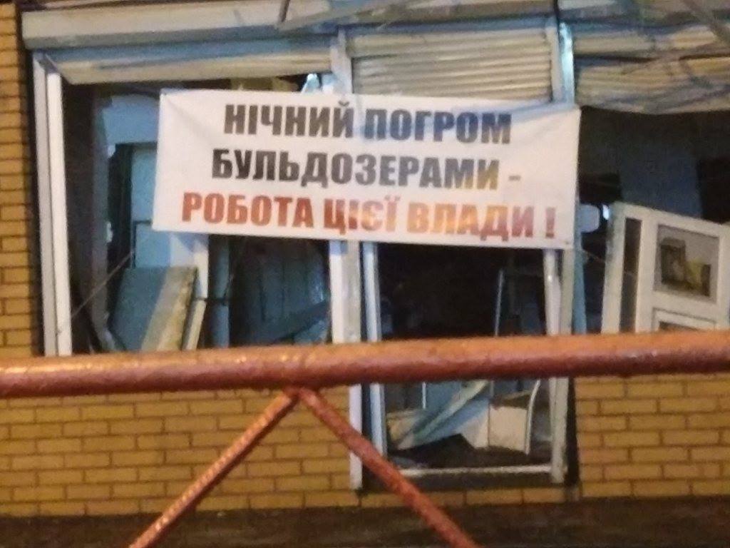 В Киеве возле Национального университета "КПИ" бульдозерами громят киоски предпринимателей. Предприниматели обвиняют в этом власти города (ФОТО)