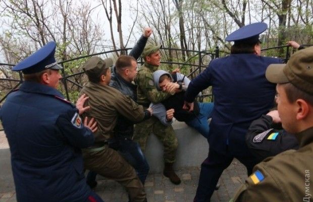 Как сообщили УНИАН в отделе коммуникаций Главного управления Национальной полиции в Одесской области, двое участников драки доставлены в Приморский отдел полиции.