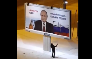 В России мужчина демонстративно разрисовал черной краской один из предвыборных билбордов президента России Владимира Путина, написав на его портрете большими буквами слово "лжец". Об этом пише "Диалог".