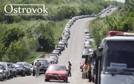 На фото трасса со стороны Горловки, очередь у блокпоста.
