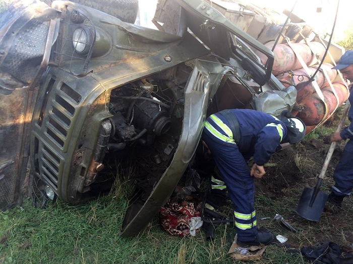 "14 сентября в 16:10 в Службу спасения "101" поступило сообщение, что в селе Титаровка, Старобельского района, на улице Мира перевернулся газовоз. По прибытию на место происшествия, спасатели 6-й Государственной пожарно-спасательной части ГУ ГСЧС Украины в Луганской области установили, что водитель газовоза "ЗИЛ-131" с 9 баллонами метана, не справился с управлением, протаранил не жилой дом и перевернулся. В результате ДТП рука водителя была зажата кабиной авто. Так как водитель не мог выбраться самостоятельно, было принято решение по деблокированию пострадавшего из кабины перевернутого газовоза. Одновременно с этим были вызваны службы взаимодействия и силы гражданской защиты Старобельского района (скорая медицинская помощь, полиция, газовая служба и автокран ООО "Старобельский элеватор"). Деблокирование и извлечение пострадавшего проходило под угрозой взрыва, так как на 3-х из 9-ти баллонах были перебиты трубки, соединяющие баллоны. В 16:55 спасателями был освобожден водитель и передан работникам скорой для дальнейшей госпитализации и оказания помощи", - сказано в сообщении.