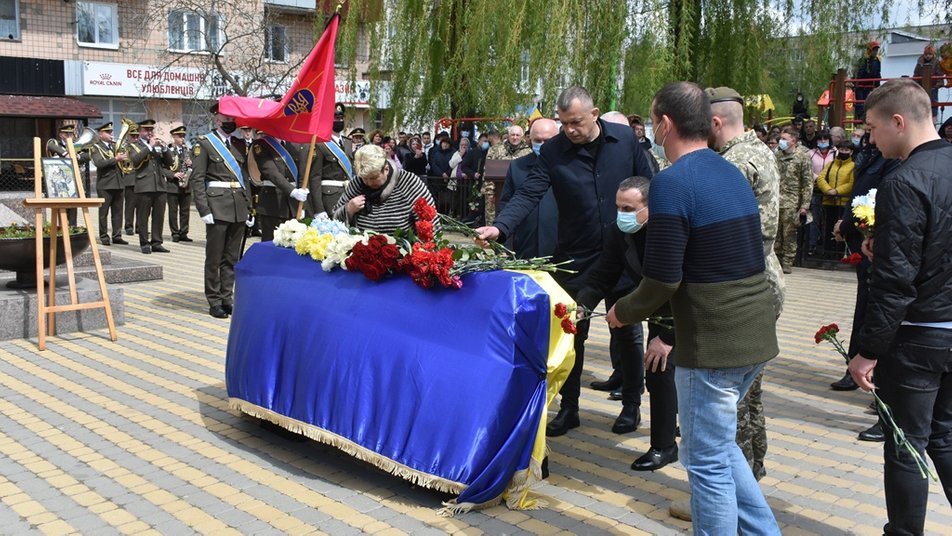 На прощання з військовим прийшли родичі військовослужбовця, жителі Коростеня та керівництво міста й області.