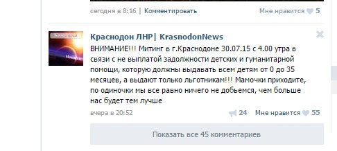 Жители Краснодона планируют провести митинг против «властей» «ЛНР». Данная информация опубликована в соцсети Вконтакте.