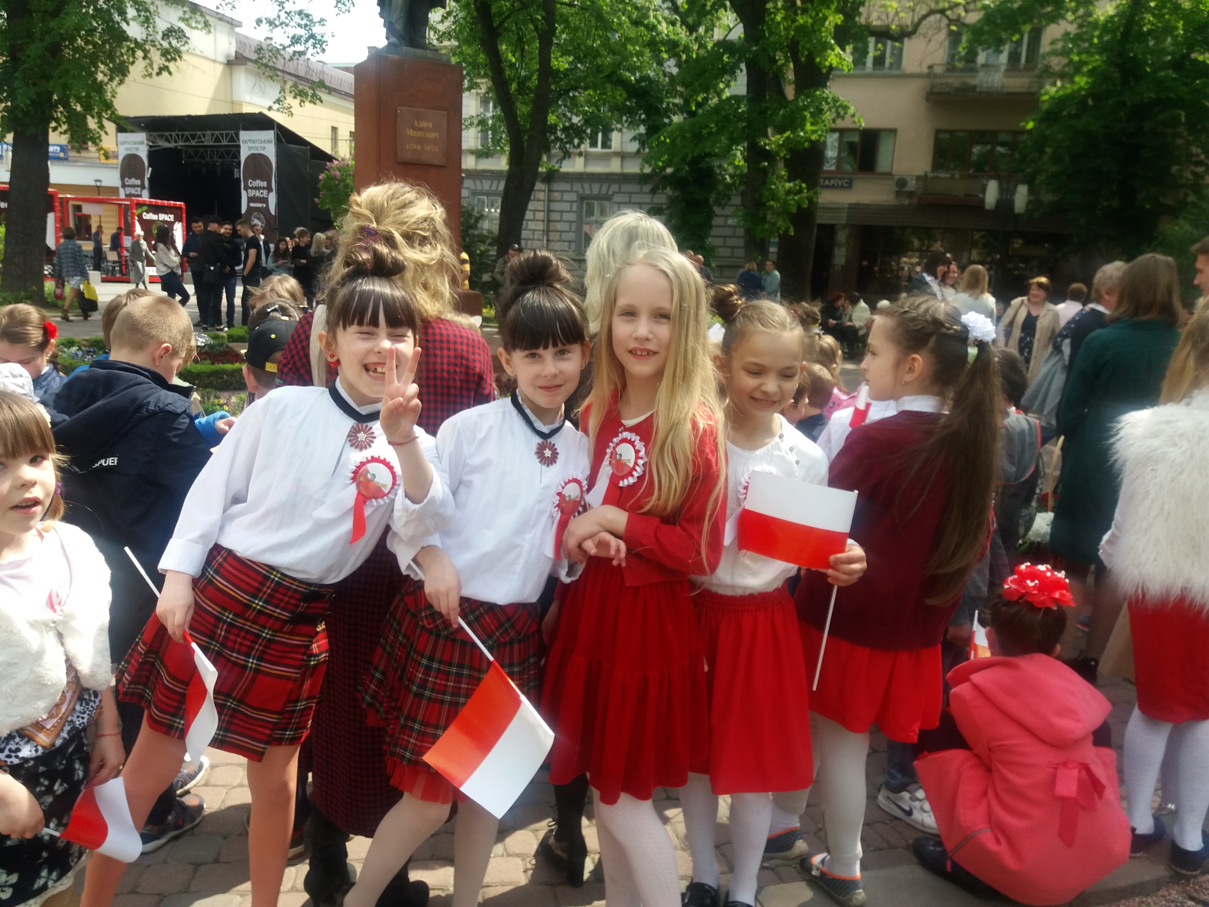 В місті працює кілька польских шкіл, чимало польских центрів. На площі Мицкевича зібрались дити, які співали польські пісні, тримаючи в руках національні флажки.