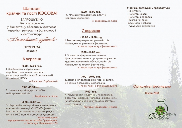 В Косові пройде дводенний фестиваль кераміки, ремесел та фольклору "Мальований дзбаник".