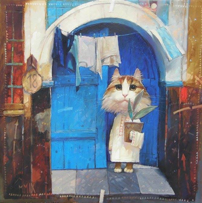 Украинский художник Александр Антонюк представил новую серию картин - "Кот-переселенец".