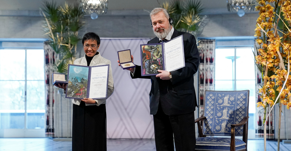 10 грудня в Осло відбулася церемонія вручення Нобелівської премії миру, яку отримали російський журналіст Дмитро Муратов і філіппінська журналістка Марія Ресса.Офіційна церемонія відбулась у мерії столиці Норвегії.