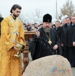 Церемонию освящения места будущего памятника провел митрополит Луганский и Алчевский Митрофан.