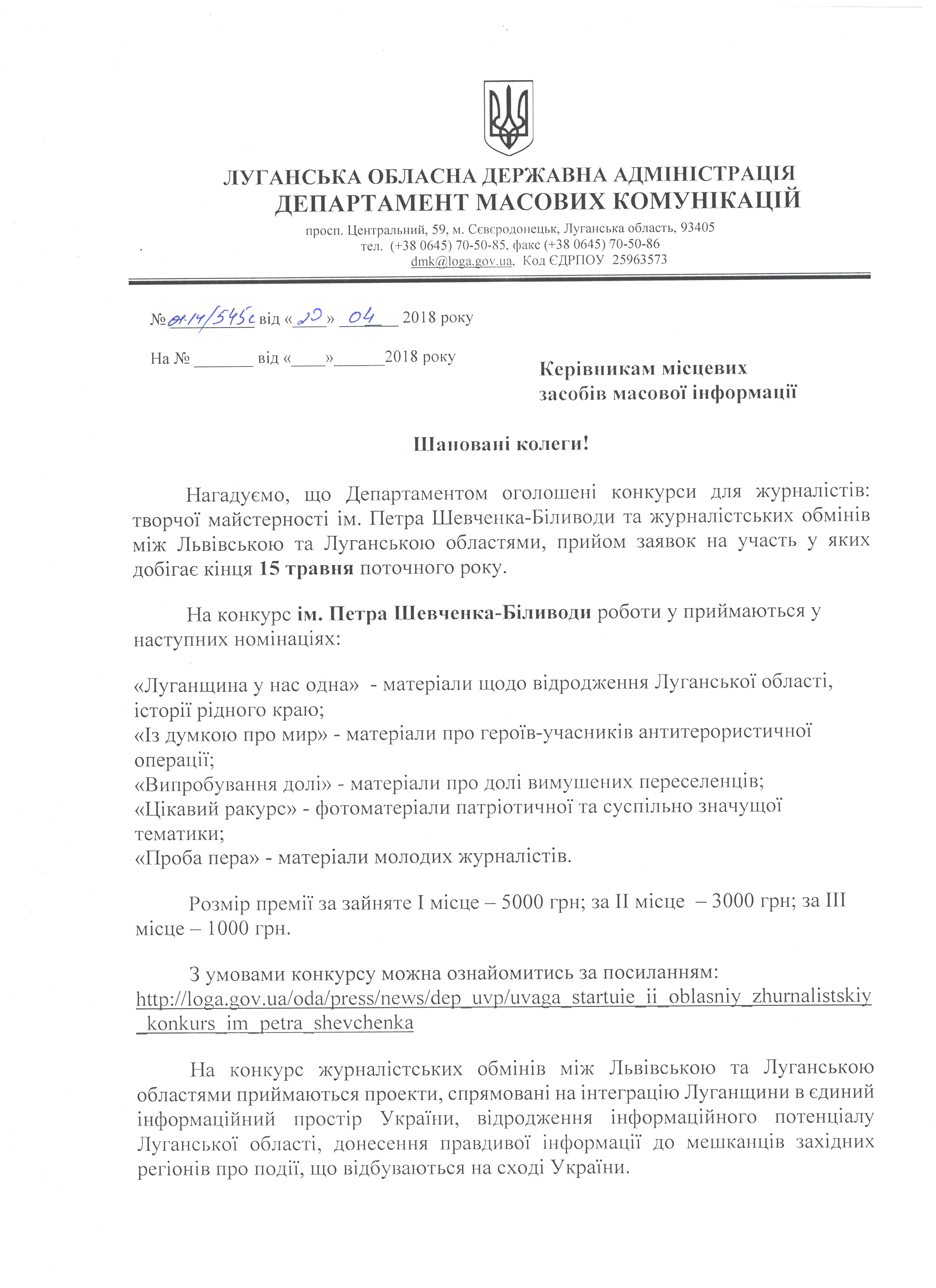 Продовжується конкурс для журналістів та журналістських обмінів між Луганщиною та Львівщиною