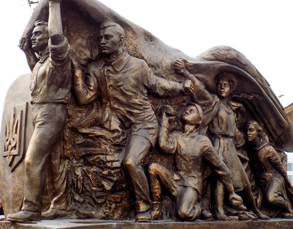 Скульптор відтворив образи Героїв Небесної Сотні, по обидва боки на підніжжі монумента викарбувані імена загиблих .