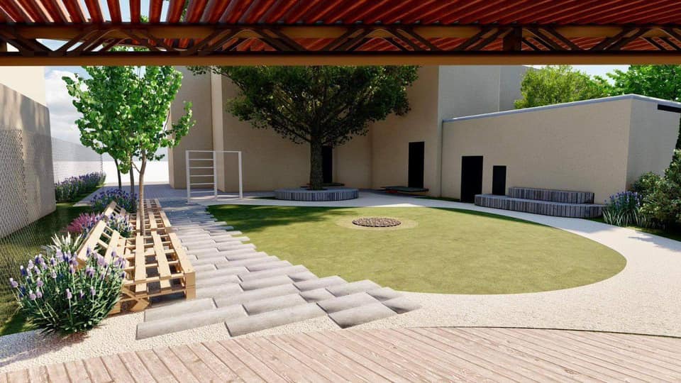 Також для проведення занять на території будуть змонтовані вуличні меблі та сцена, яка в дощову погоду перетворюється на зручний і комфортний сховок, а з протилежного боку переобладнаний спортивний куток та мінітир для різноманітних вправ.
