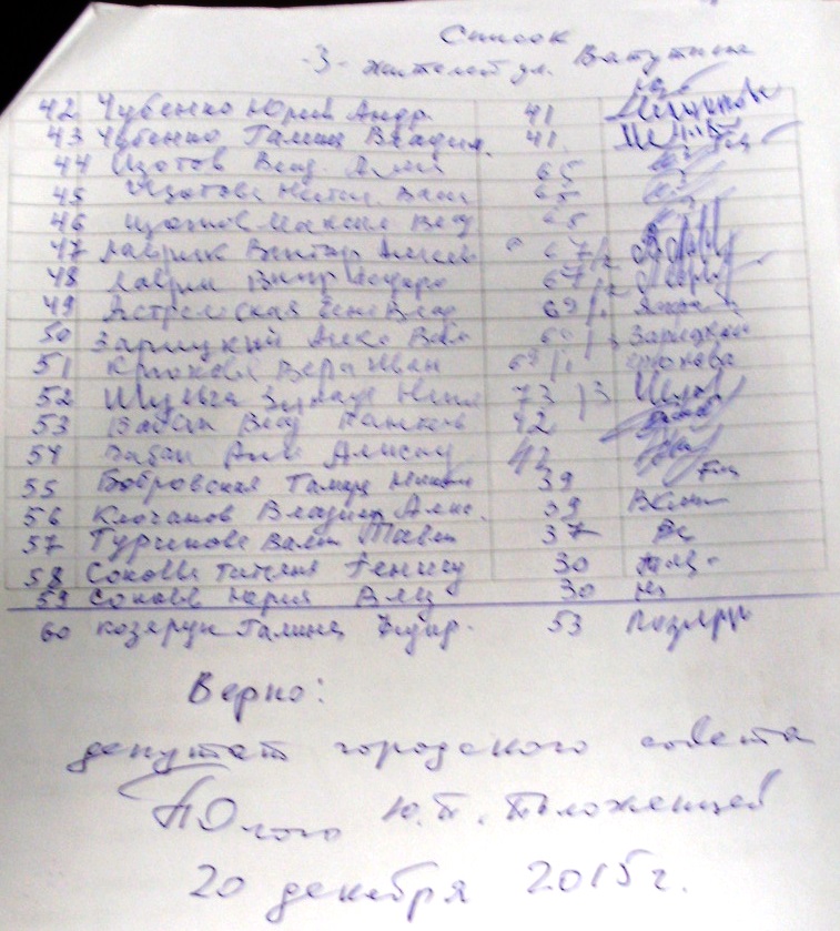 Под этим текстом подписалось 60 жителей улицы им.Ватутина г.Лисичанска.