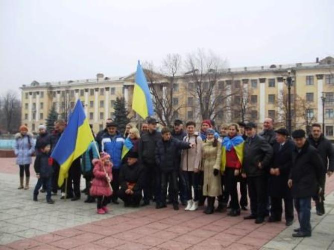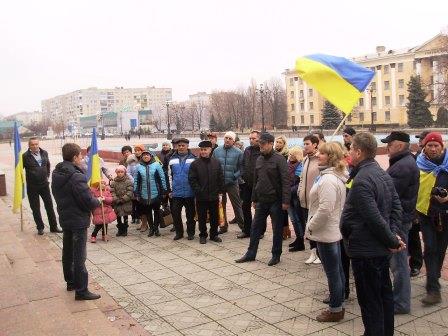 21 ноября всего около четырех десятков активистов Лисичанска пришли к кинотеатру Дружба на митинг, посвященный новому украинскому празднику - Дню достоинства и свободы.