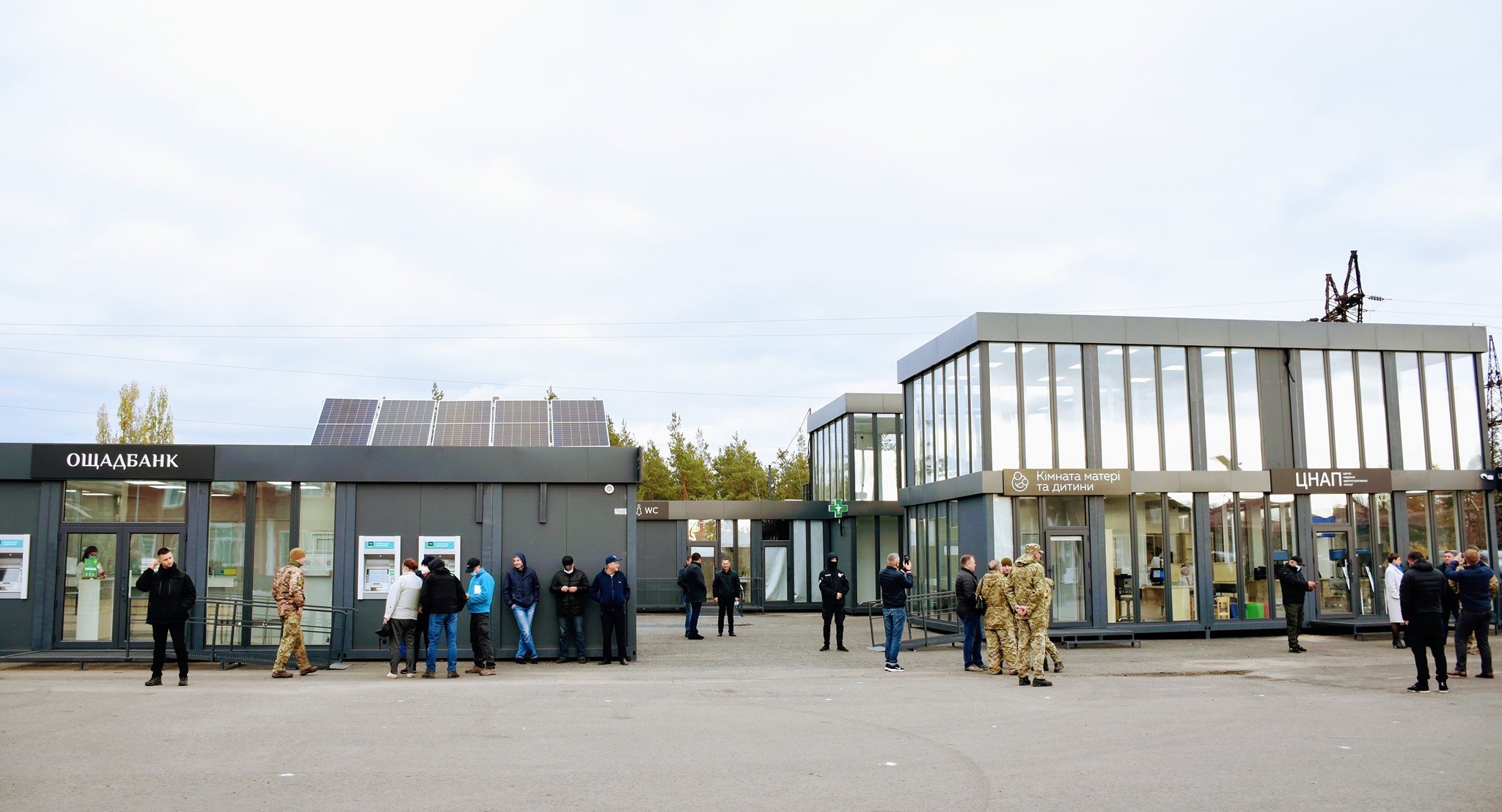 «Це, дійсно, щастя – бути на відкритті цього сучасного КПВВ. Його дуже швидко побудували завдяки підтримці наших міжнародних партнерів. ЦНАП надає 88 адміністративних послуг, що дуже важливо для всіх громадян України, для цивільних людей, які перебувають на нашій стороні та на тимчасово окупованих територіях», – зазначив президент.