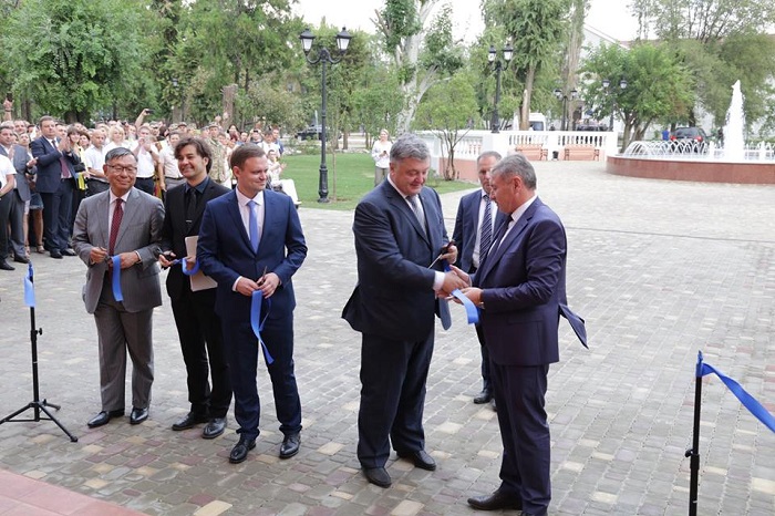 Разом з Міністром культури України Євгеном Нищуком, Повноважним послом Японії в Україні Сумі Шігекі та директором театру Сергієм Дорофєєвим вони розрізали символічну синю стрічку.