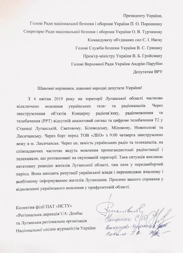 "ПОСТ ВІДЧАЮ". П"ятий день на Луганщині відсутнє українське мовлення - дирекція UA: Донбас
