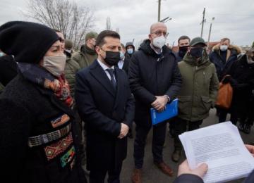 Президент України Володимир Зеленський і Президент Європейської ради Шарль Мішель поспілкувалися з представниками міжнародних гуманітарних місій на КПВВ «Щастя», повідомляє прес-служба Луганської ЦВА.