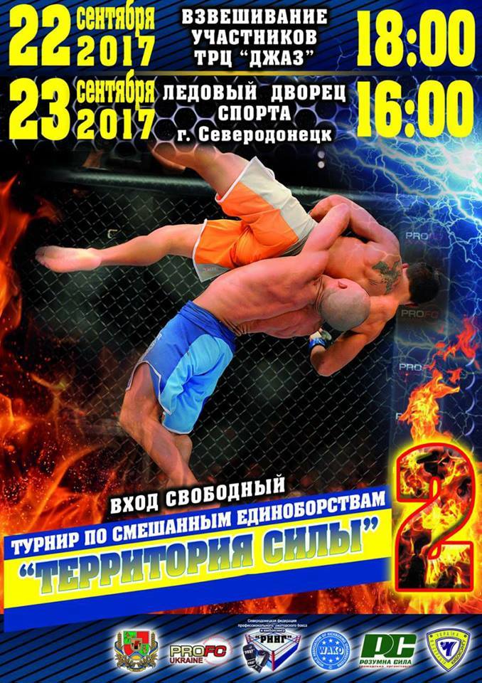 У суботу, 23 вересня, о 16.00 у місті Сєвєродонецьк (Луганська обл. Льодовий Палац спорту) відбудеться турнір зі змішаних єдиноборств "Територія сили 2".Про це повідомляють організатори.