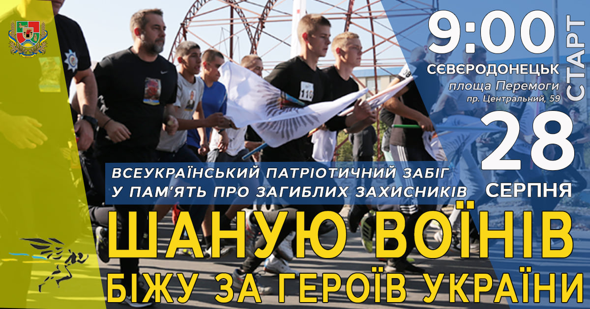 28 серпня у Сєвєродонецьку відбудеться Всеукраїнський патріотичний забіг у пам'ять про загиблих воїнів «Шаную воїнів, біжу за героїв України»