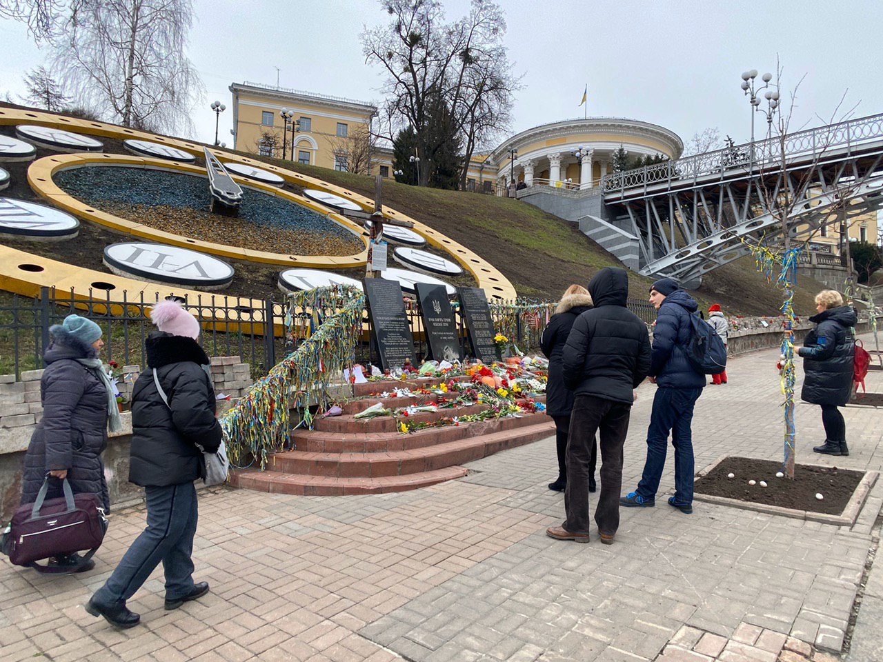 На Аллею Героев Небесной Сотни украинцы несут цветы и лампадки. Там же проходит памятная панихида.