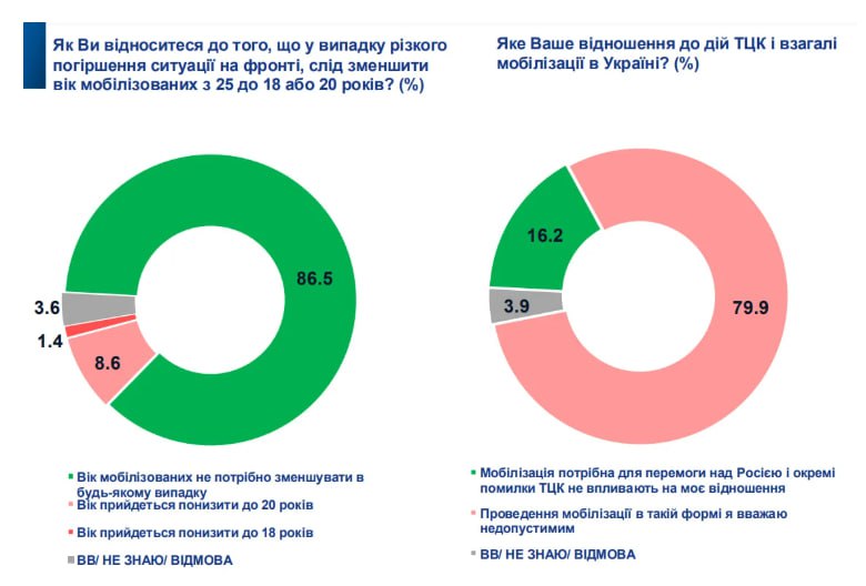 Крім того, 79,9% українців вважають неприпустимим проведення мобілізації у такій формі, як зараз.