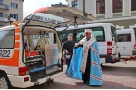 Поблагословив у дорогу мальтійців та автомобілі Архієпископ і Митрополит Івано-Франківський Кир Володимир (Війтишин).