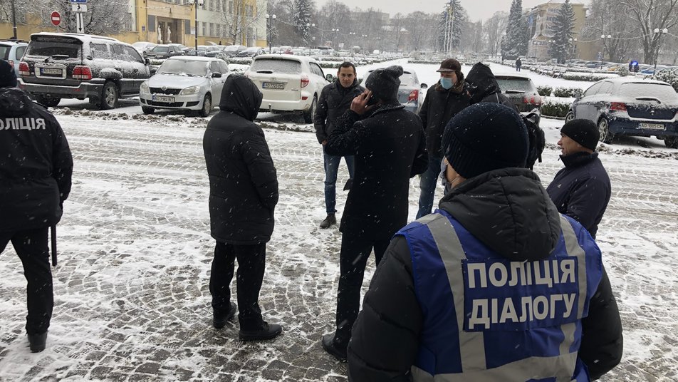 Наразі учасники акції чекають, аби до них вийшли представники влади.